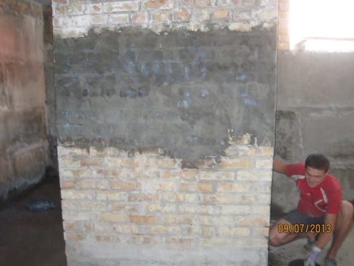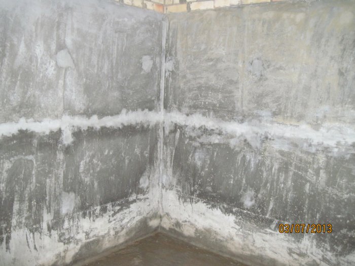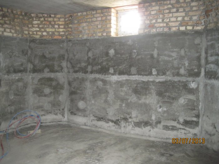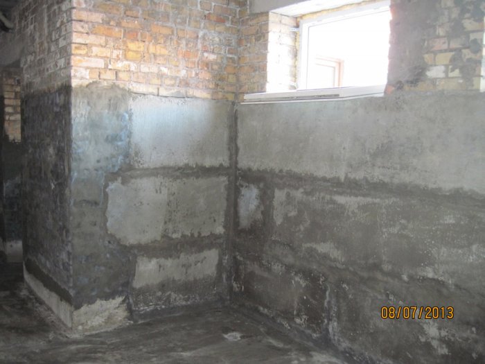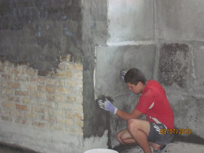 Укрепление и гидроизоляция кирпичной кладки; гидроизоляция стяжки пола на этапе бетонирования. |