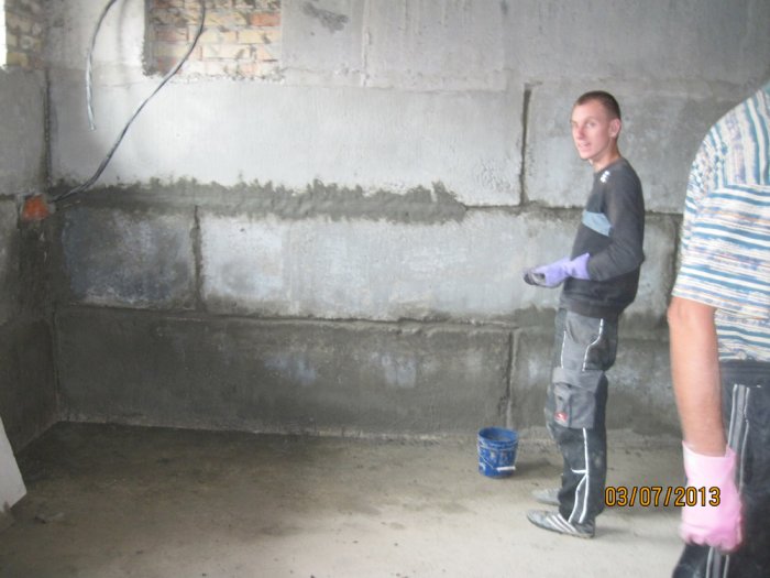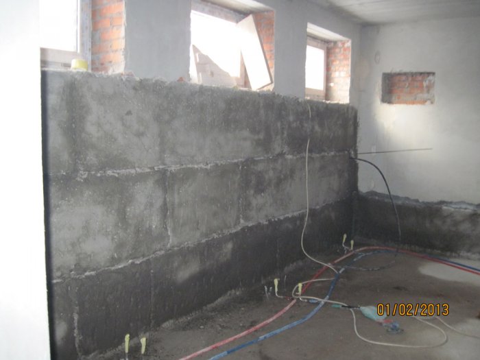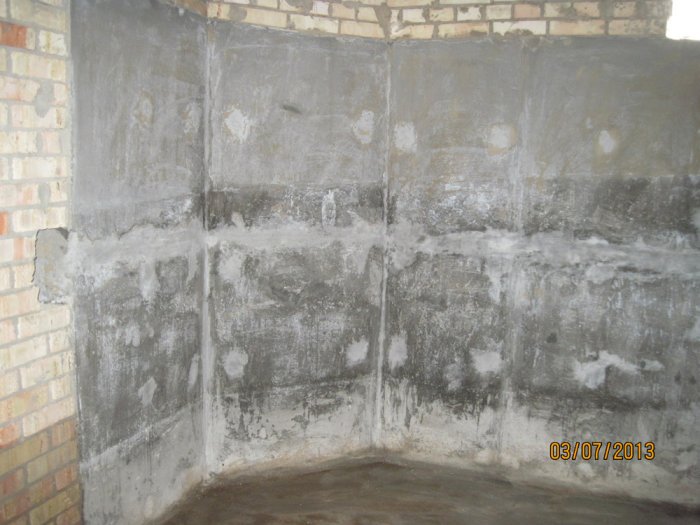 Гидроизоляция кирпичной кладки; гидроизоляция стяжки пола. |