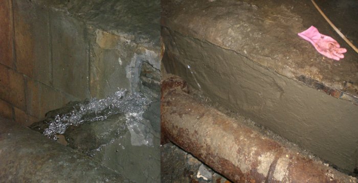 Частичный ремонт бетона, гидроизоляция бетона, герметизация и гидроизоляция холодных швов бетонирования, гидроизоляция вводов коммуникаций. |